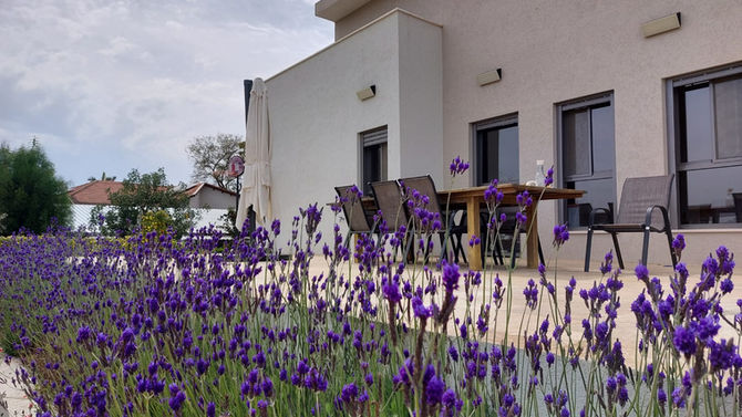 התכנון בפרויקט זה התייחס לחיבור הבין דורי. יצרנו מרחב משותף המקשר בין בתי המשפחה בעזרת מדשאה רחבת ידיים עטופה בחיבוק רך של צמחייה עליזה וצבעונית שמשנה את עורה בהתאם לעונות הפריחה השונות. פינת ישיבה מרוצפת בזלת מקורה בוורדים אנגליים מטפסים, הרבה צמחי כיסוי שצובעים ומקררים את אדמת השפלה הלוהטת